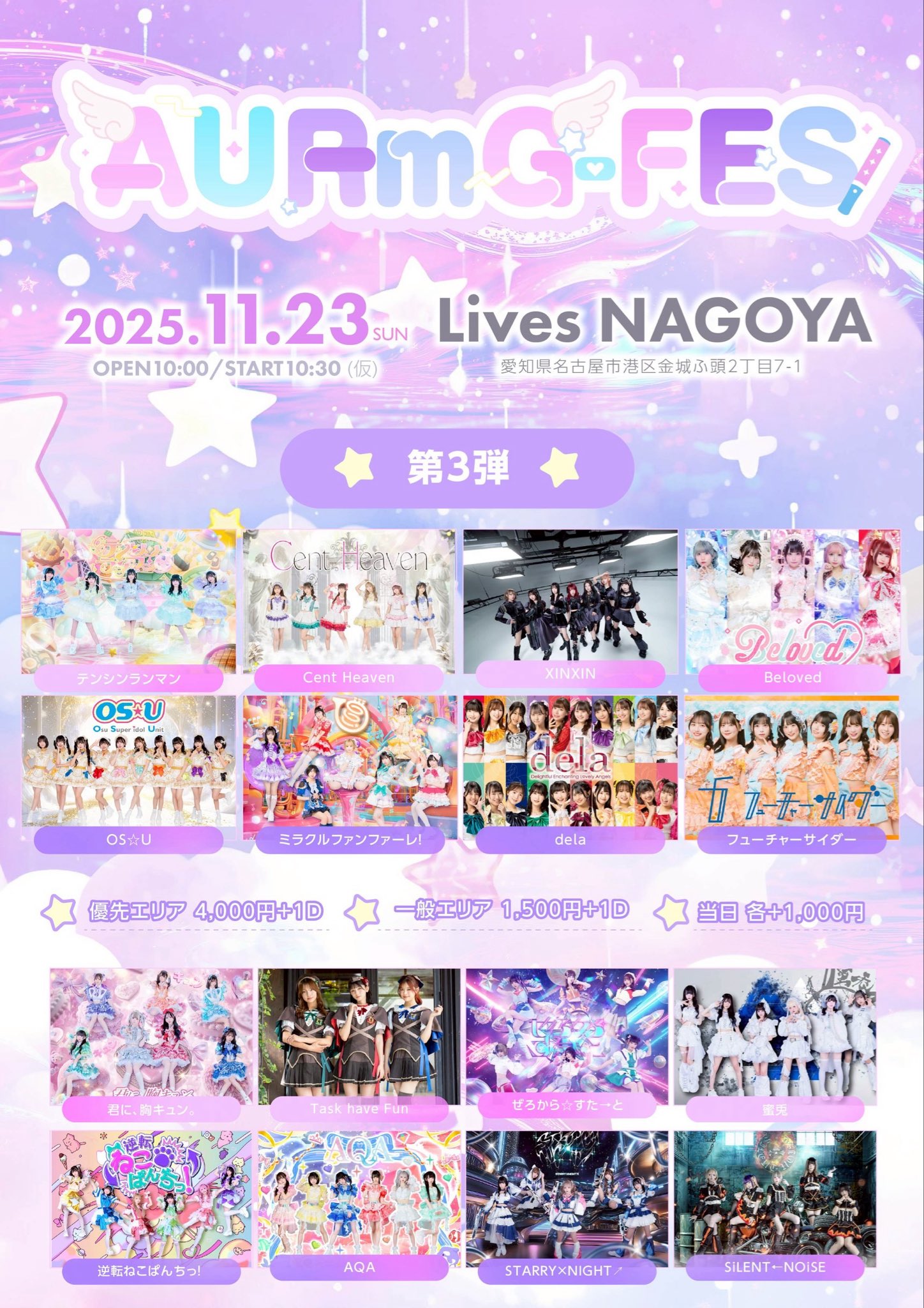 料金:優先エリア4000円/一般エリア1500円/当日+1000円(1D別)