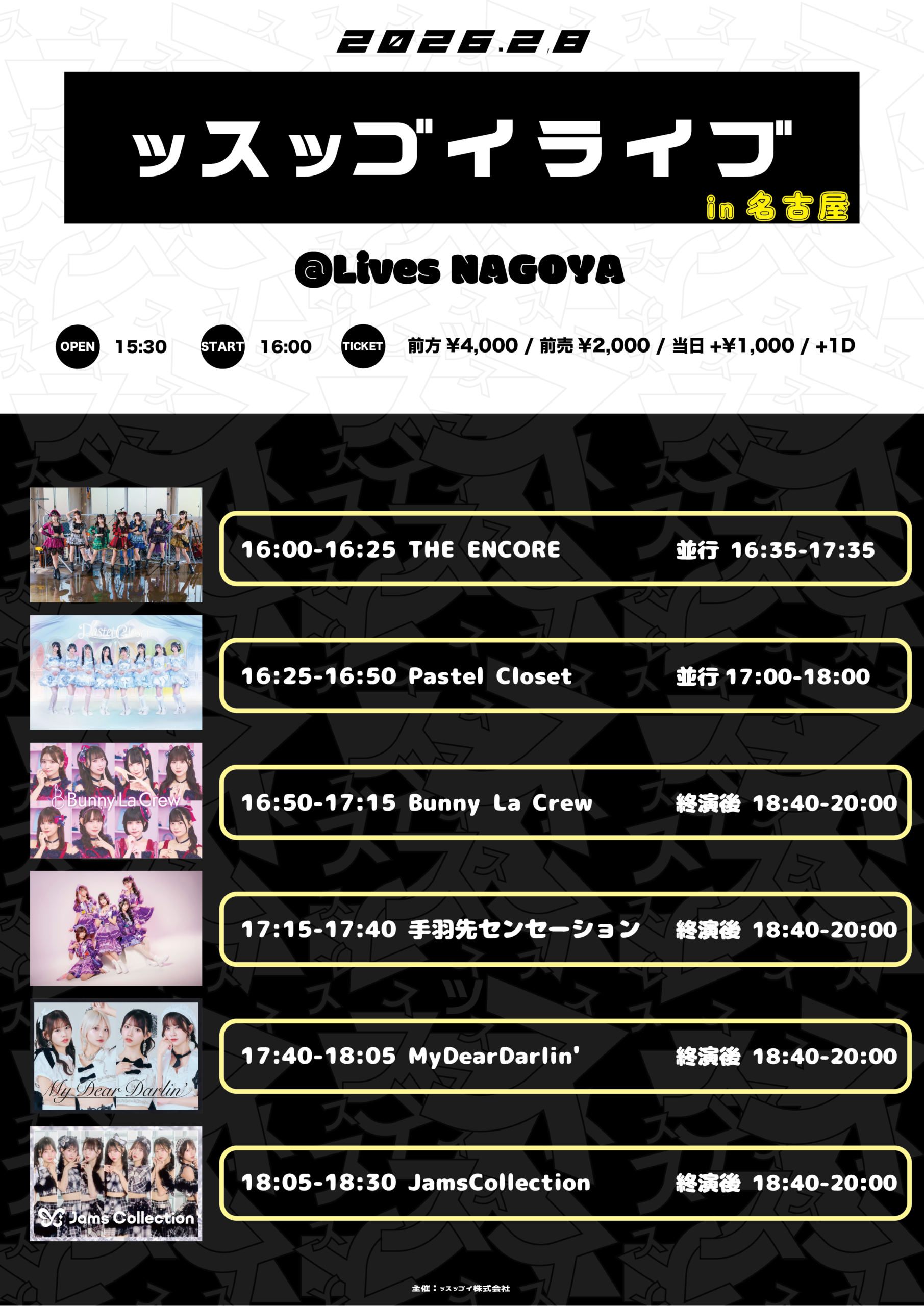 ◆出演:JamsCollection / MyDearDarlin’ / 手羽先センセーション / THE ENCORE / Bunny La Crew / Pastel Colset